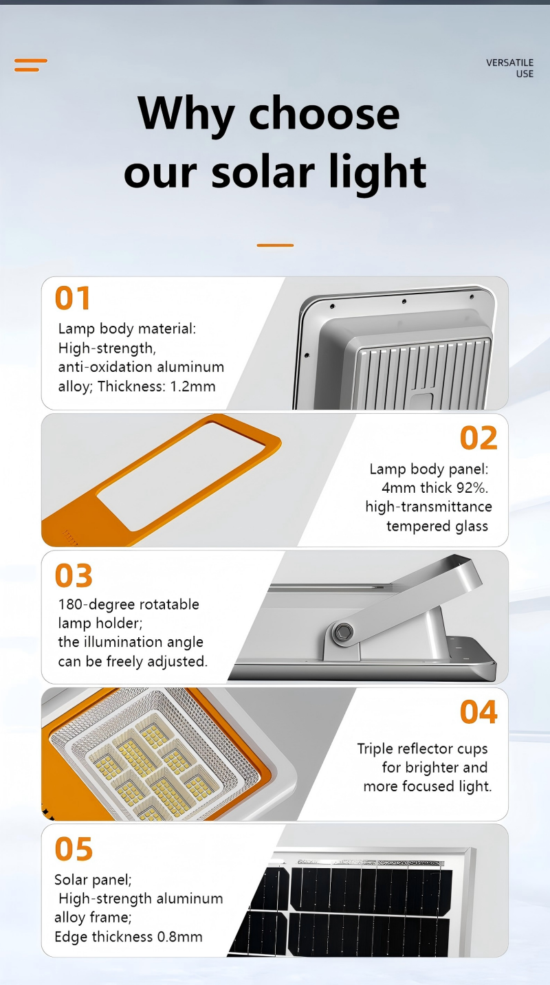 Our solar lights were made of high-impact die-casting aluminum housing, which can reached IP66 waterproof grade, can withstand all kinds of terrible weather.